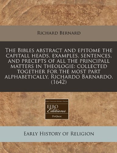 The Bibles abstract and epitome the capitall heads, examples, sentences, and precepts of all the principall matters in theologie: collected together ... alphabetically, Richardo Barnardo. (1642) Review